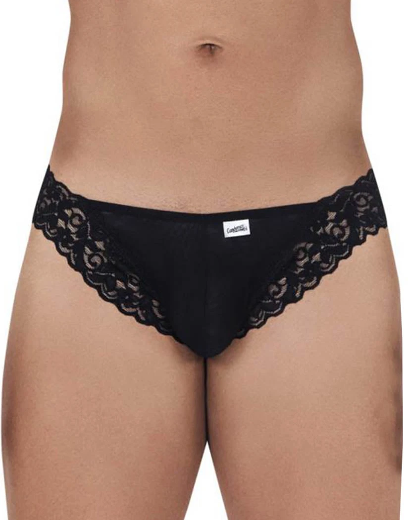 This Candyman Mesh-Lace Thong is sweet and sexy. The thong is made of sheer, solid-colored material. It’s trimmed by wide lace around both legs. This pair of underwear falls below the waist for a sexy silhouette and uses its design to hold you up instead of a waistband. The minimal coverage rear shows you off while the seamed pouch provides support. You’ll love this exciting new style.