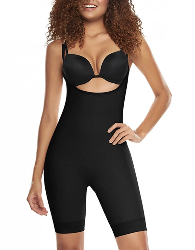 The Firm Control Open Bust Bodysuit with Removable Pads from True Shapers is a bodysuit with an open bust design, allowing you to wear your own bra. This bodysuit flatters and enhances your natural curves by targeting your tummy, waist, back, hips, thighs, and rear. It also provides lower back support. It is made from a temperature control and moisture wicking fabric, permitting air flow and keeping you cool and dry. The padding is removable, allowing you to customize your comfort and fit level. Other features of this shaping bodysuit include a seamless design to prevent panty lines, adjustable and convertible straps, and an open gusset for convenience.