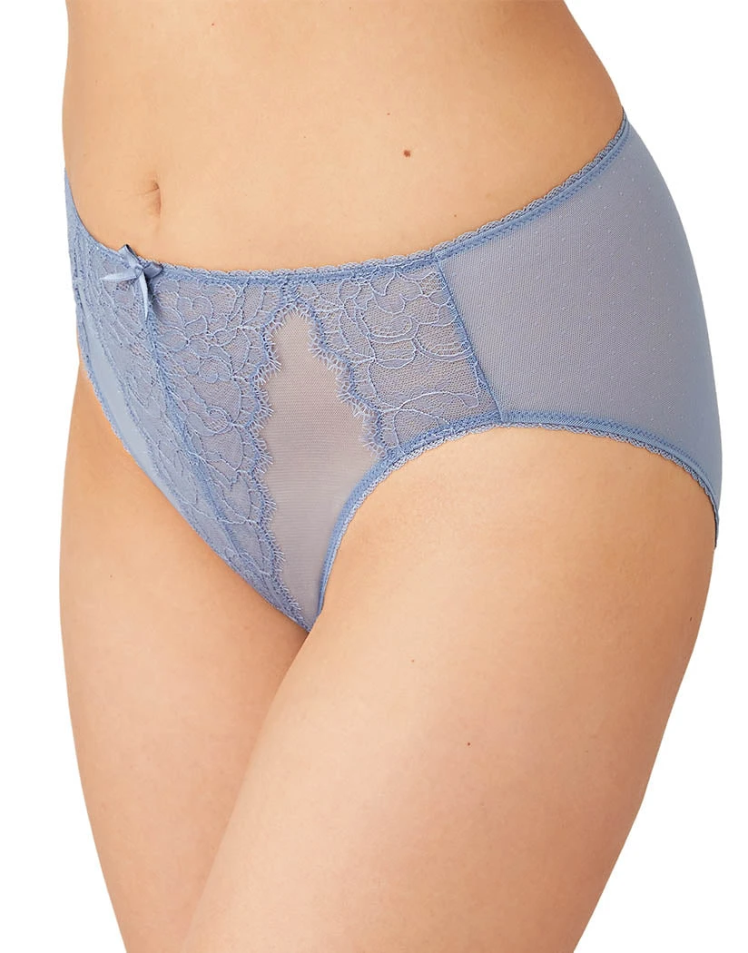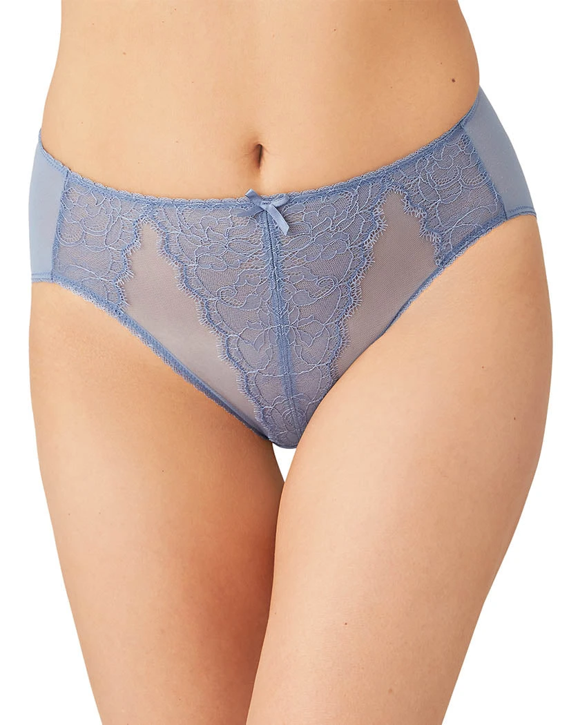 You’re guaranteed to look fabulous in the Wacoal Retro Chic High Cut Brief because it features a hidden tummy-smoothing panel. It’s made from exquisite stretch lace, inspired by vintage lingerie. It offers full coverage in sheer, lightweight mesh. The high-cut legs lend the illusion of longer legs. Add some glamour to your day with the Wacoal Retro Chic High Cut Brief. Pair with the matching Wacoal Retro Chic Full Coverage Underwire Bra 855186.